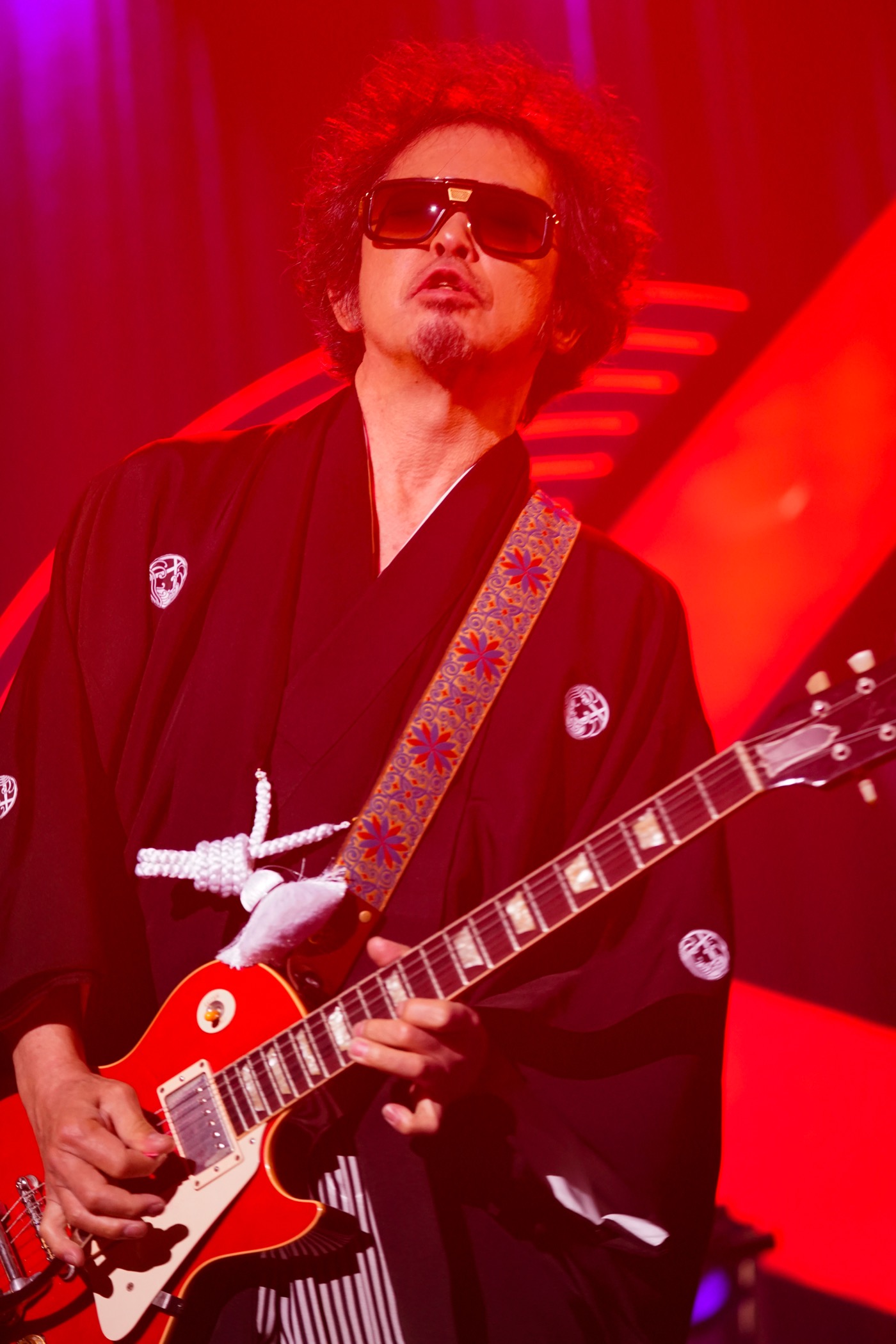 Ooochie Koochieのふたりを含む男性は紋付袴、女性ふたりは振袖姿で、ステージに登場。Ooochie とKoochie、共にギブソン・レスポールを携え、音を確かめると、「おちこち」でライブがスタートする。続いて「Do The Shuffle」、その次は「Three Arrows」と、最初のブロックは、ツインボーカル&ツインギターで、互いの役割が50/50の3曲が並んだ。サンフレッチェ広島の応援歌である「Three Arrows」では、チームカラーである紫の照明でステージが染められる。