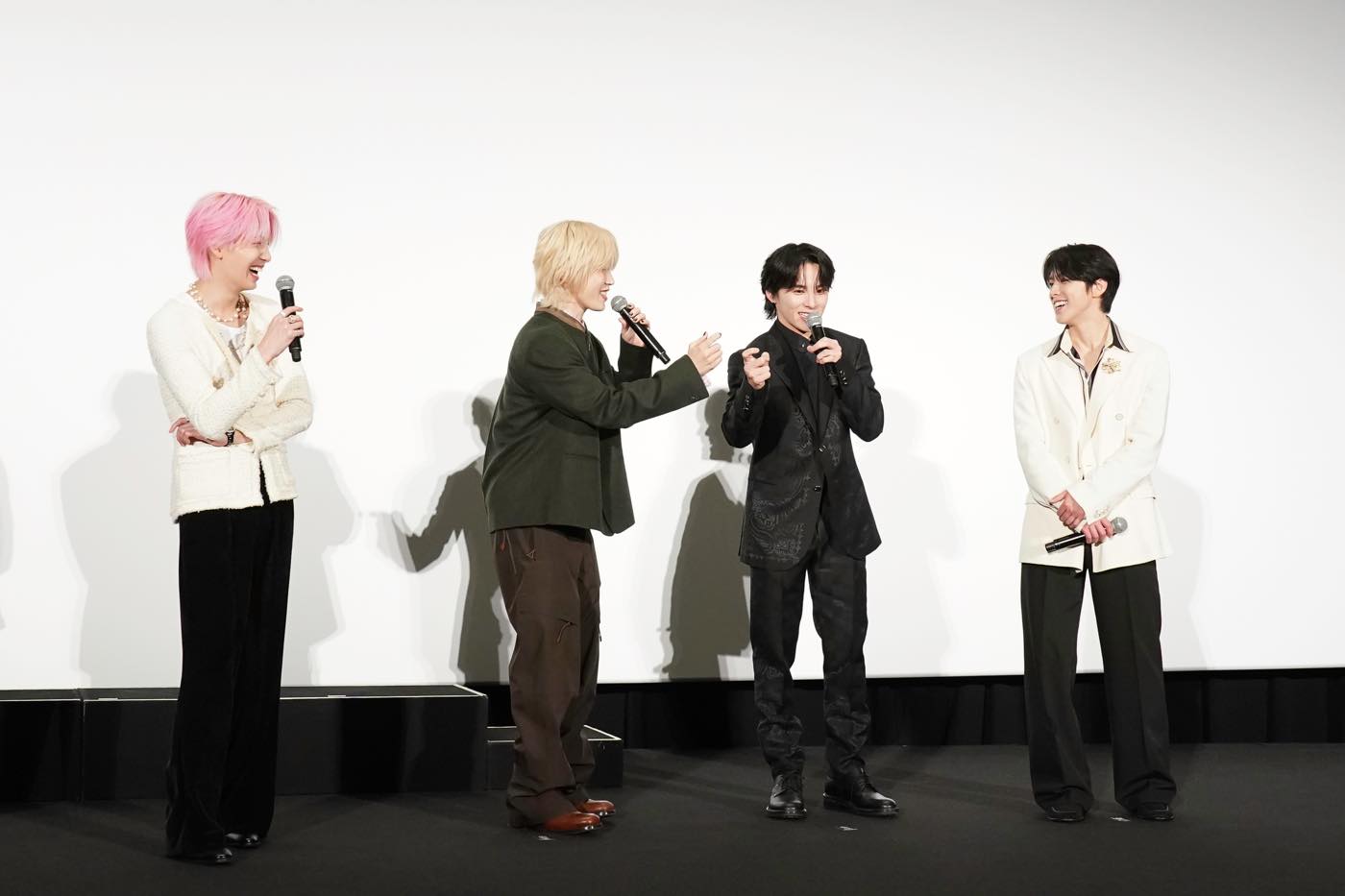 自己紹介では、メンバーそれぞれが地元の映画館へと呼びかけ盛り上げる。さらに河野純喜は、1週間韓国で過ごしたのち、昨日帰宅した際に冷蔵庫が開いており、中身をすべて捨てることになってしまったと明かし、近況トークで笑いを誘った。