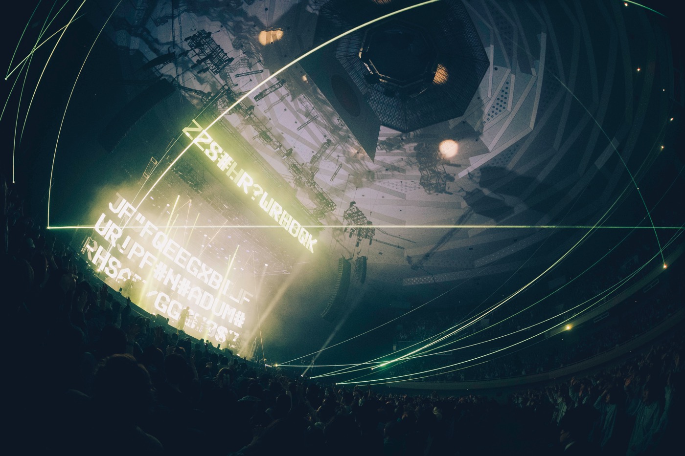 「ターミナル」から「聖者たち」では会場をダークな空気に包み、続く「DRESSING ROOM」で雰囲気は一転。「細胞単位で踊りましょう」と告げ、四つ打ちのビートに乗せ力強い歌声を響かせる。終盤はノンストップでどんどん熱量を上げていく展開だ。「非常口 逃げてみた」ではカオティックな盛り上がりを生み出し、「Overdose」では華やかな祝祭のムードに包まれる。なとりは「全力でかかってこい!」とフロアを繰り返し煽る。「SPEED」では疾走感あふれるステージにレーザーが乱舞する。