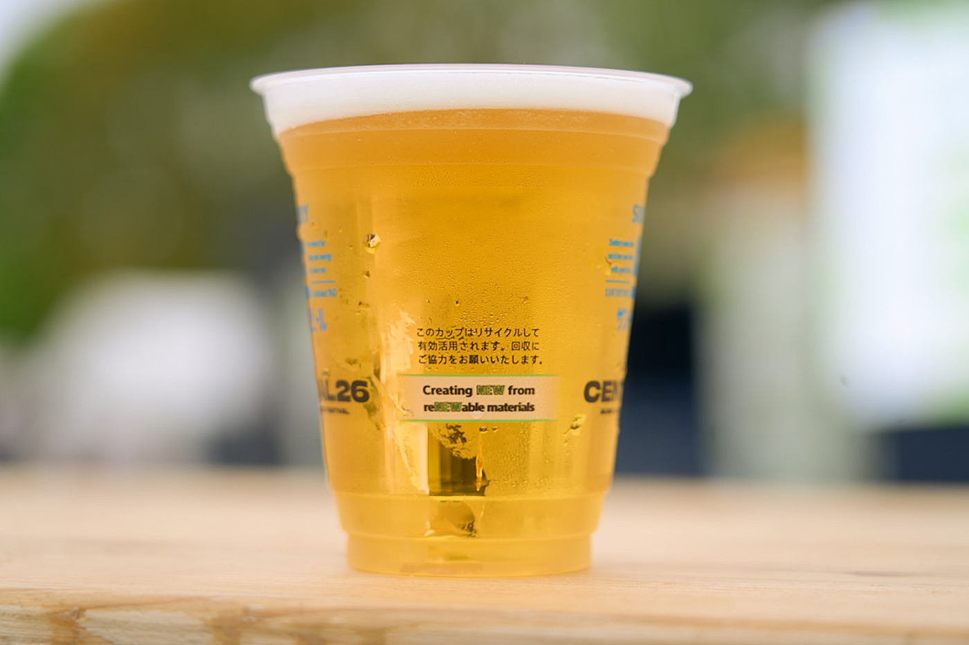 フェス飯を楽しんだあとも、「CENTRAL FIELD」ならではのあらたな取り組みに触れることができた。今回、「CENTRAL FIELD」で使われたドリンク用のプラスチックカップは、捨てられていた植物のしぼりかすなどのバイオ由来の原料を活用している。