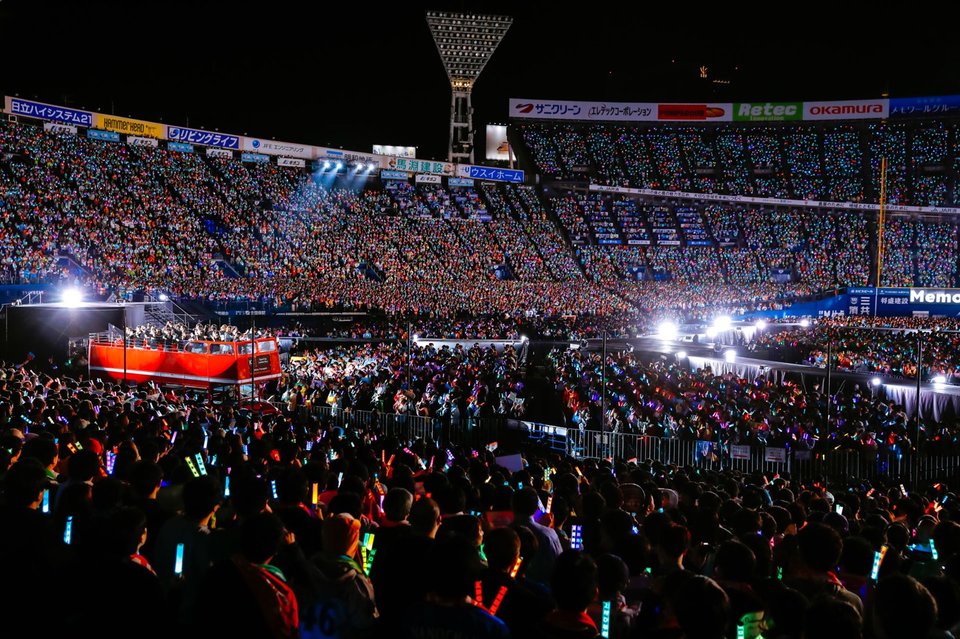 そしてアリーナに赤いロンドンバスが登場。メンバーたちはバスに乗り込み、会場を一周しながら「君しか勝たん」を歌唱。アリーナやスタンド席のファンに手を振ったり、ポーズを決めたりしながら、コミュニケーションを取っていく。