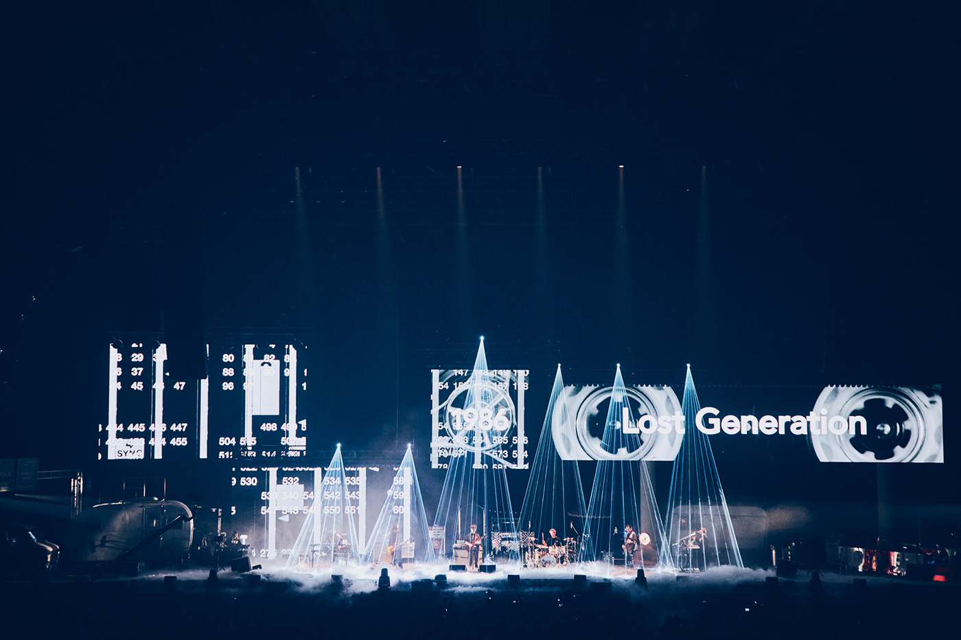 さらに「アフターダーク」「エンパシー」と楽曲を畳み掛けると、有明アリーナは早くも序盤にして歓喜のレッドゾーンへと突入している。「横浜で結成して30年、ここまでバンドが続いてきたことを幸せに思いますし。いろんな時期がありましたけども、こうやって一いちばん上までたくさんの人に囲まれて演奏できることを、幸せに思います」