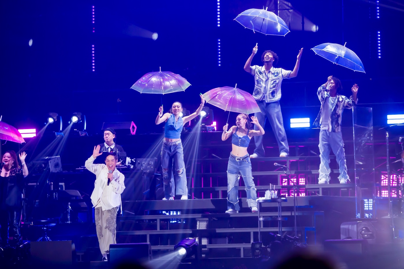 「the Beat of Life」では重厚なリズムにグルーヴ感溢れる力強いサウンドで会場は揺れ、笑顔に包まれた「LOVE RAIN ~恋の雨~」ではダンサーやコーラスたちが傘を差し、観客と一緒に体を揺らしてパフォーマンス。一瞬で会場がひとつとなる。