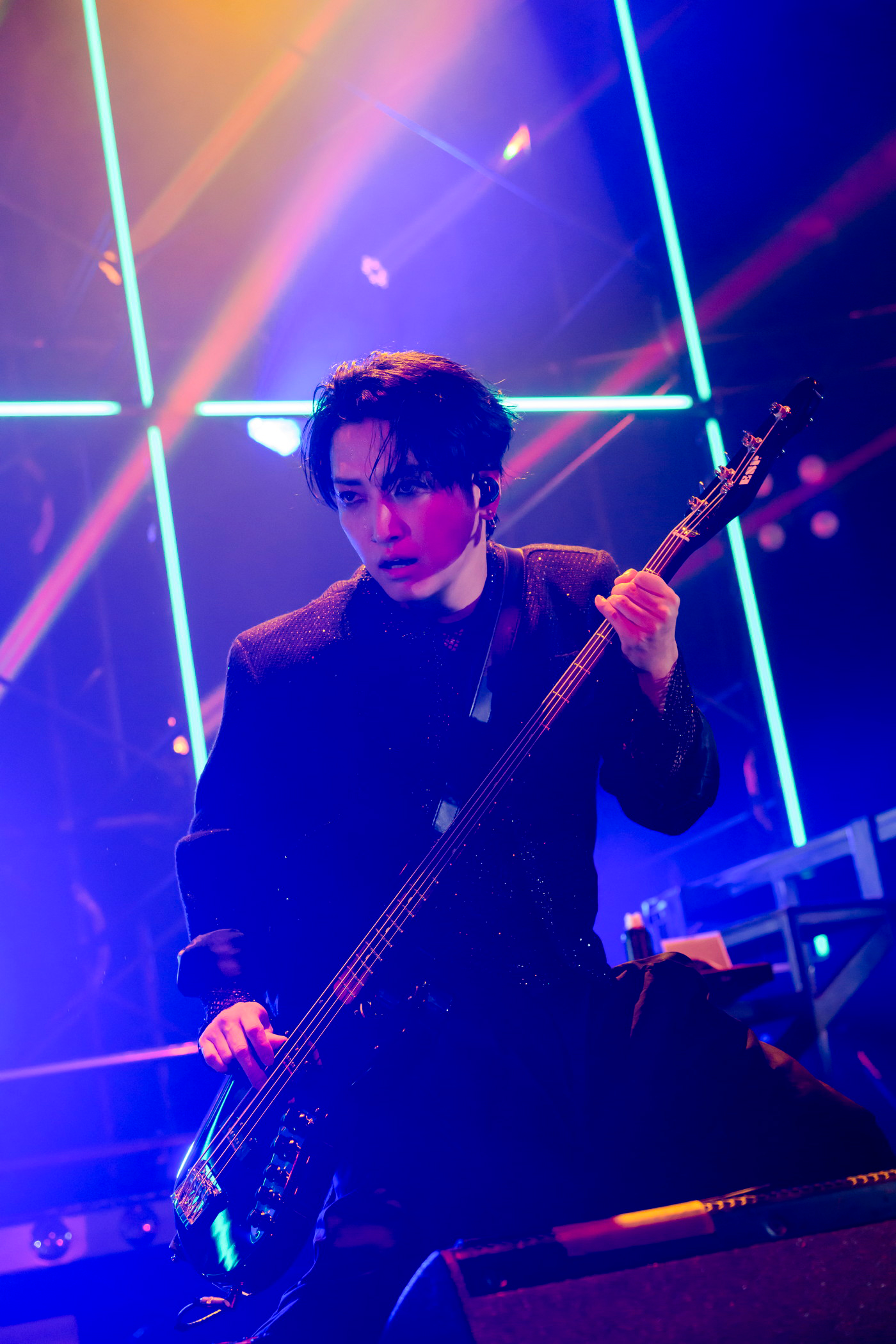 明希は髪を振り乱してターンを繰り返しながらプレイして、Shinjiはしゃがんだかと思えば即座に立ち上がり、ギターを垂直に天に突き立て仰け反りながら演奏。荒々しいパフォーマンスをメンバーたちが繰り広げる中央で、ゆうやは緻密にプレイしていた。