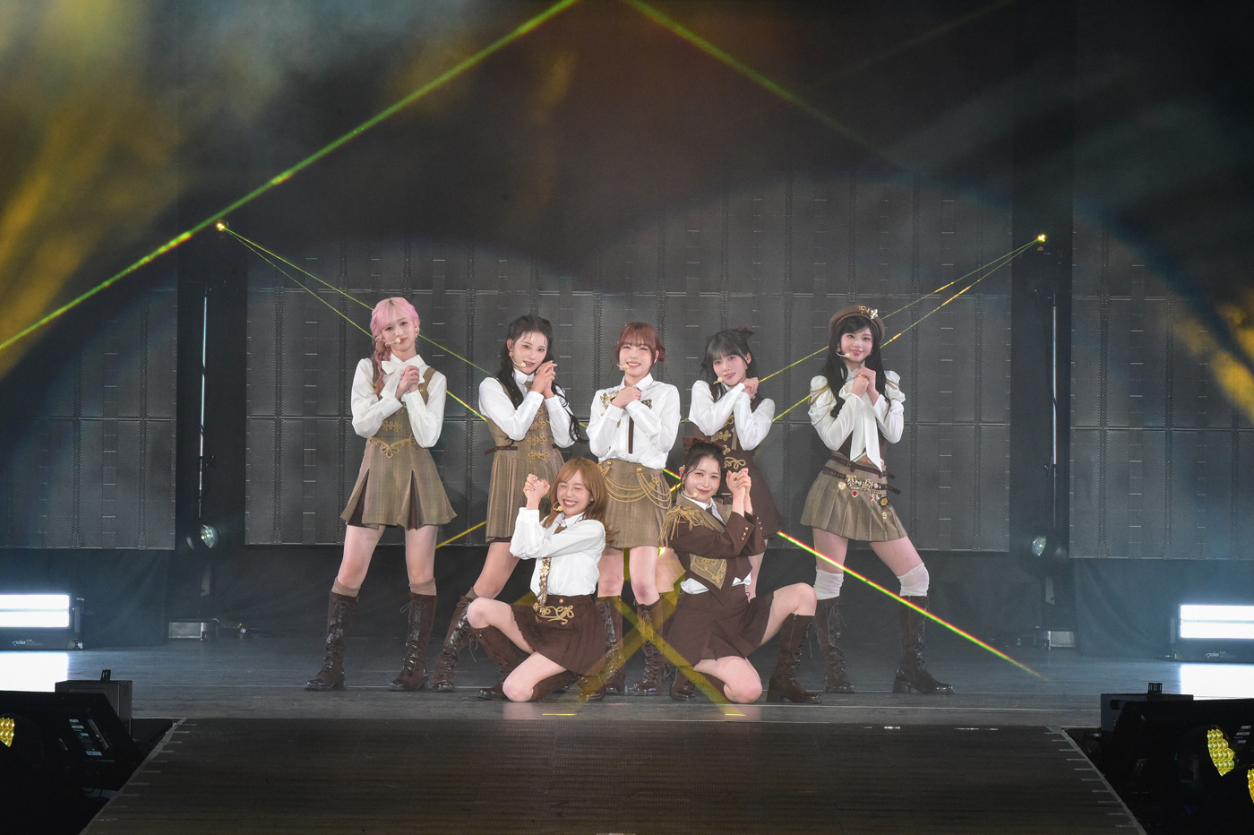さらに「髪をなびかせるような振付もあるのでご注目ください!」と見どころを紹介し、ついに最新曲「Update ME」をフルサイズで初披露。キレのあるダ ンスを繰り出しながら、元気いっぱいの笑顔で届けられたフレッシュなパフォーマンスに、会場は一体感のある興奮で包み込まれた。そして最後は「以上、ME:Iでした~!」と感謝の言葉を残し、晴れやかにステージをあとにした。