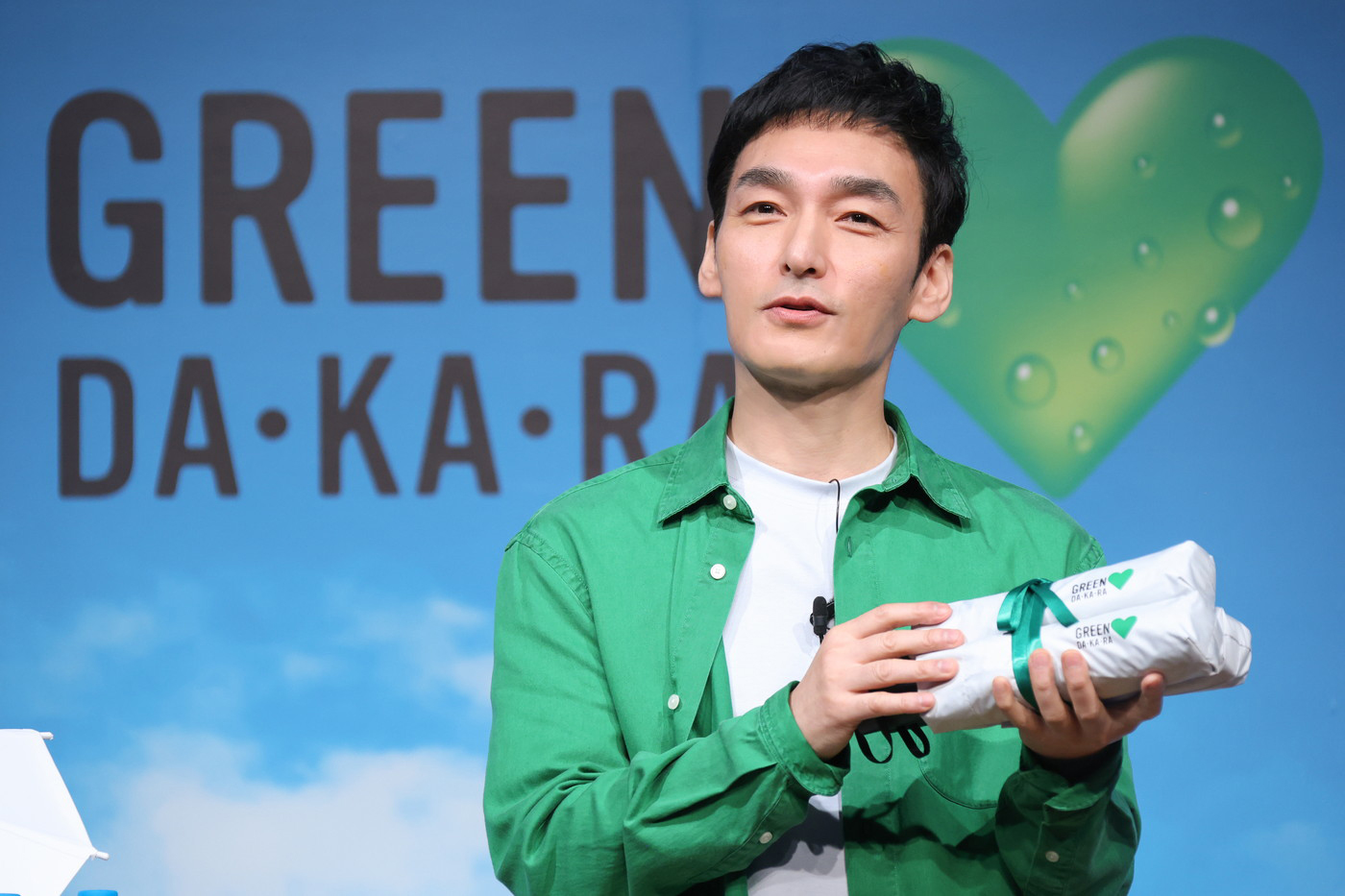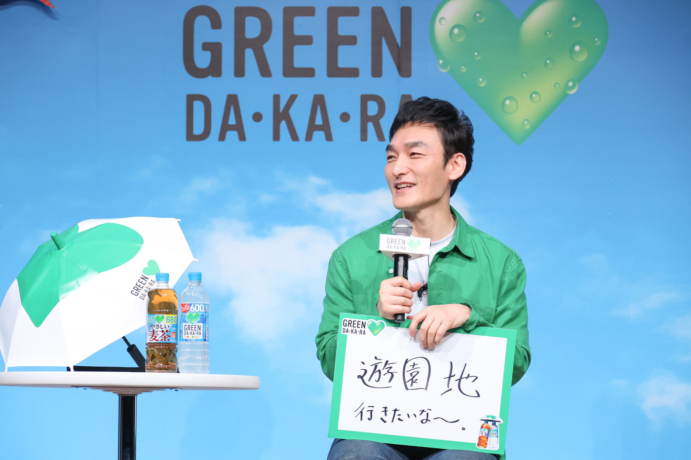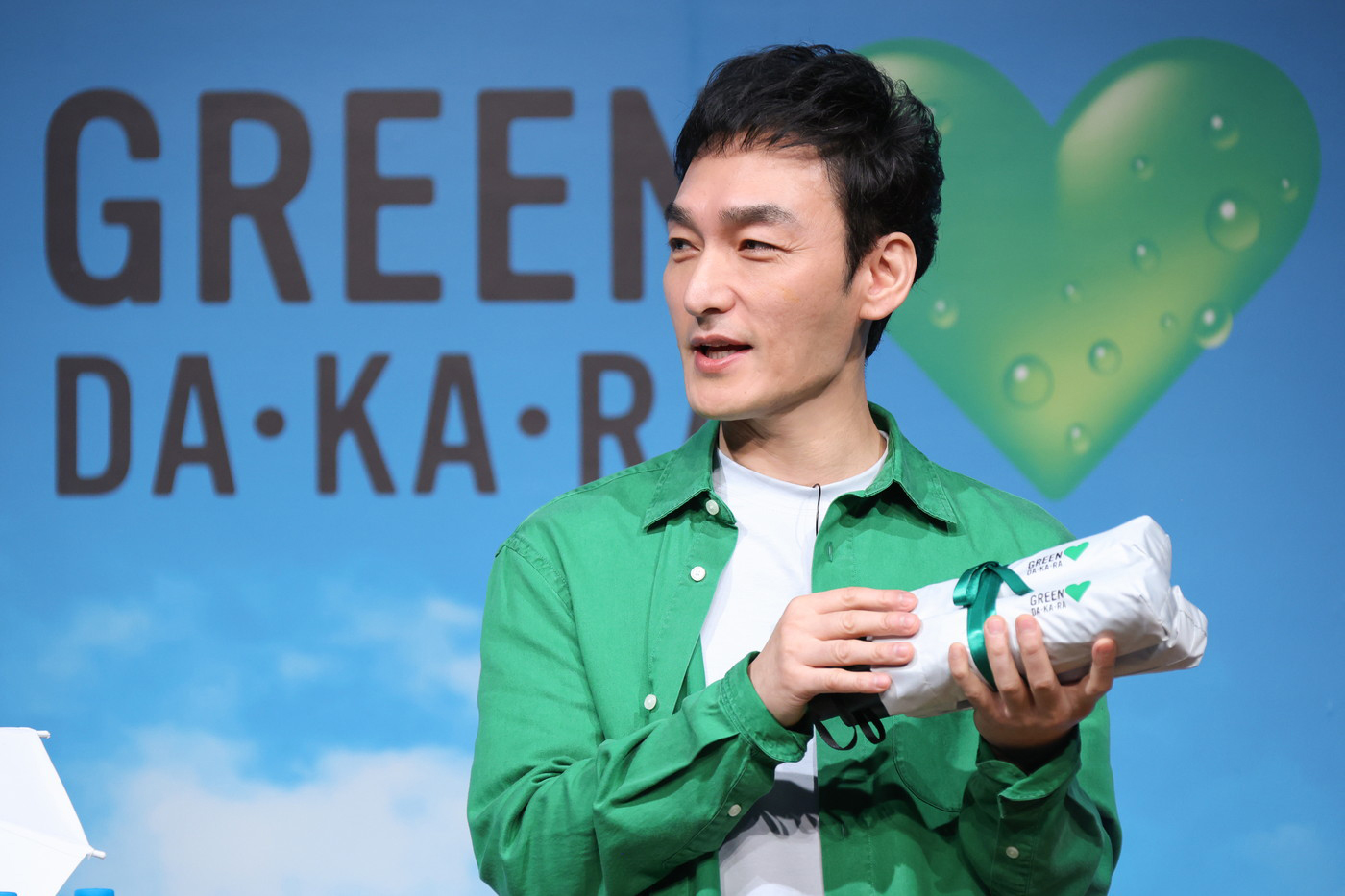 草なぎ剛(「なぎ」は、弓へんに旧字体の前+刀が正式表記)が4月27日に開催された『サントリー“GREEN DA・KA・RA”新CM&「おやこひがさ大作戦!」発表会』に登壇した。